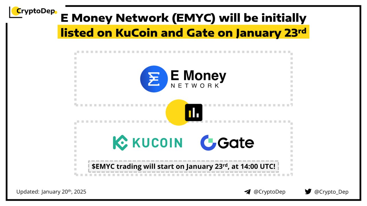 ββE Money Network (EMYC) will be initially listed on KuCoin and Gate on January 23rd