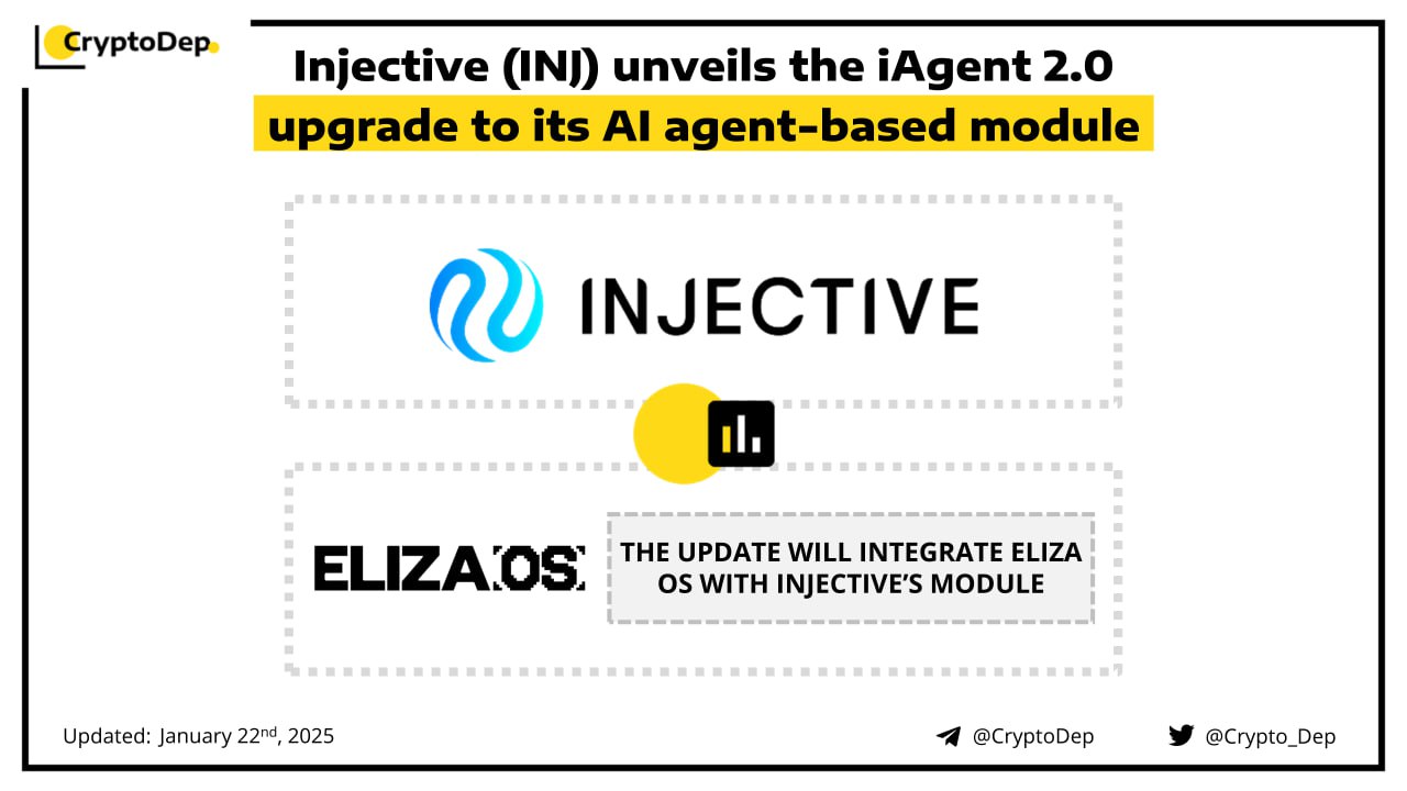 Injective has announced the launch of iAgent 2.0, a transformative upgrade to the first AI agent-based module. The innovation will integrate Eliza OS multi-agent framework with Injective's module. Developers will be able to utilize the module to create intelligent agents with advanced features, including native modules, wasm-based environment, and cross-chain IBC communication. Moreover, Injective has kicked off the first AI Agent hackathon powered by iAgent 2.0 & Eliza OS and co-hosted by DoraHacks. Injective is a Layer 1 blockchain optimized for building the premier Web3 finance applications.