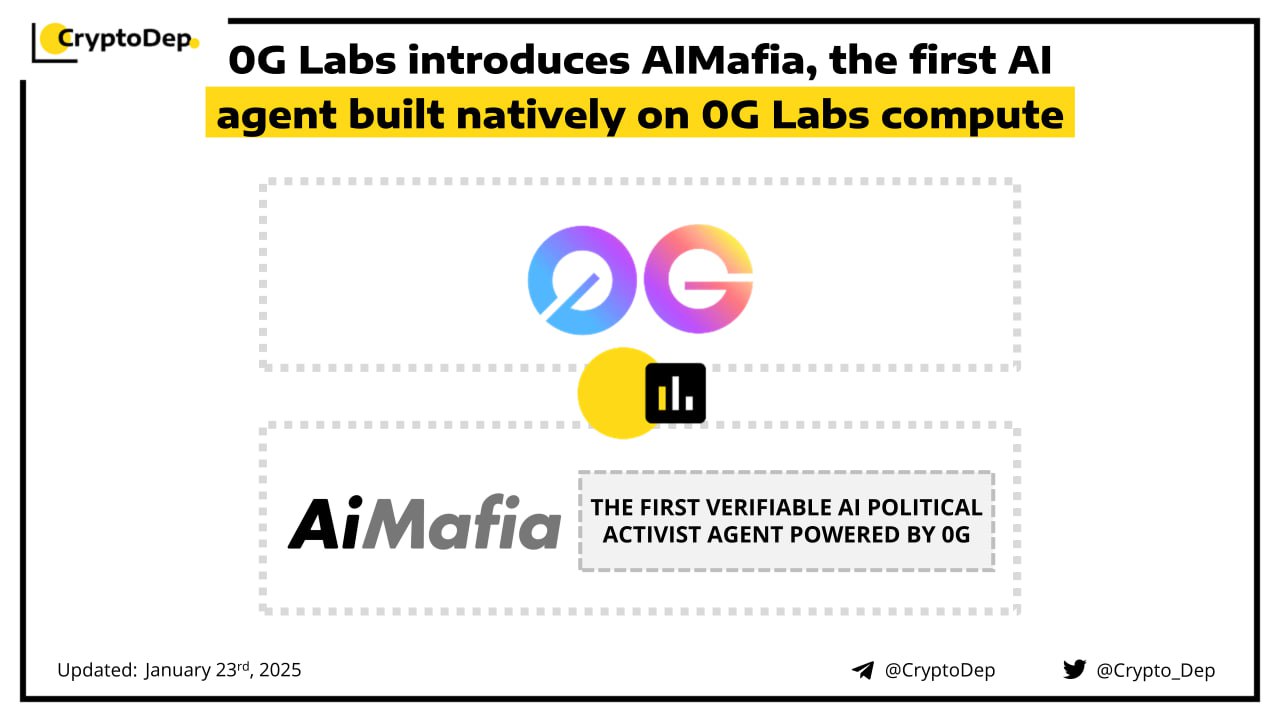 0G Labs unveils AIMafia, the first verifiable AI political activist agent, powered by 0Gβs inference technology. AIMafia aims to forge an alliance under the banner of PolitifAI, where artificial intelligence shapes society and trustlessness rules supreme. Earlier this week, 0G also partnered with BΒ² Network to make BTC rollups highly performant. 0G Labs is the world's first Decentralized AI Operating System (dAIOS).