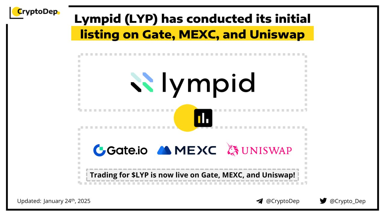 Lympid (LYP) has conducted its initial listing on Gate, MEXC, and Uniswap
