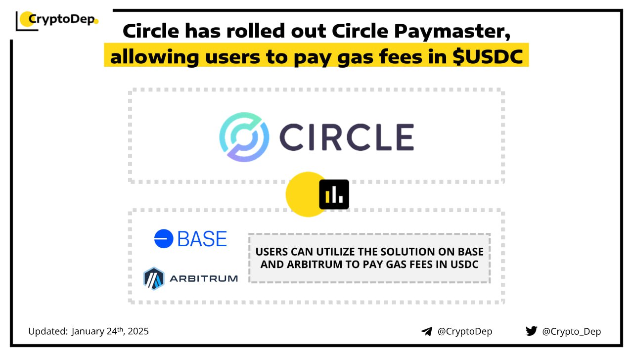 Circle has rolled out Circle Paymaster, allowing users to pay gas fees in $USDC