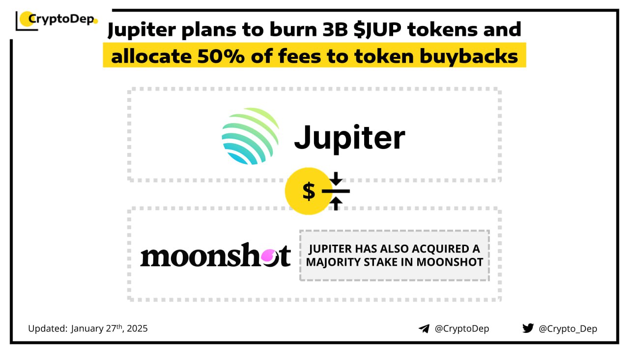 ββJupiter plans to burn 3B $JUP tokens and allocate 50% of fees to token buybacks