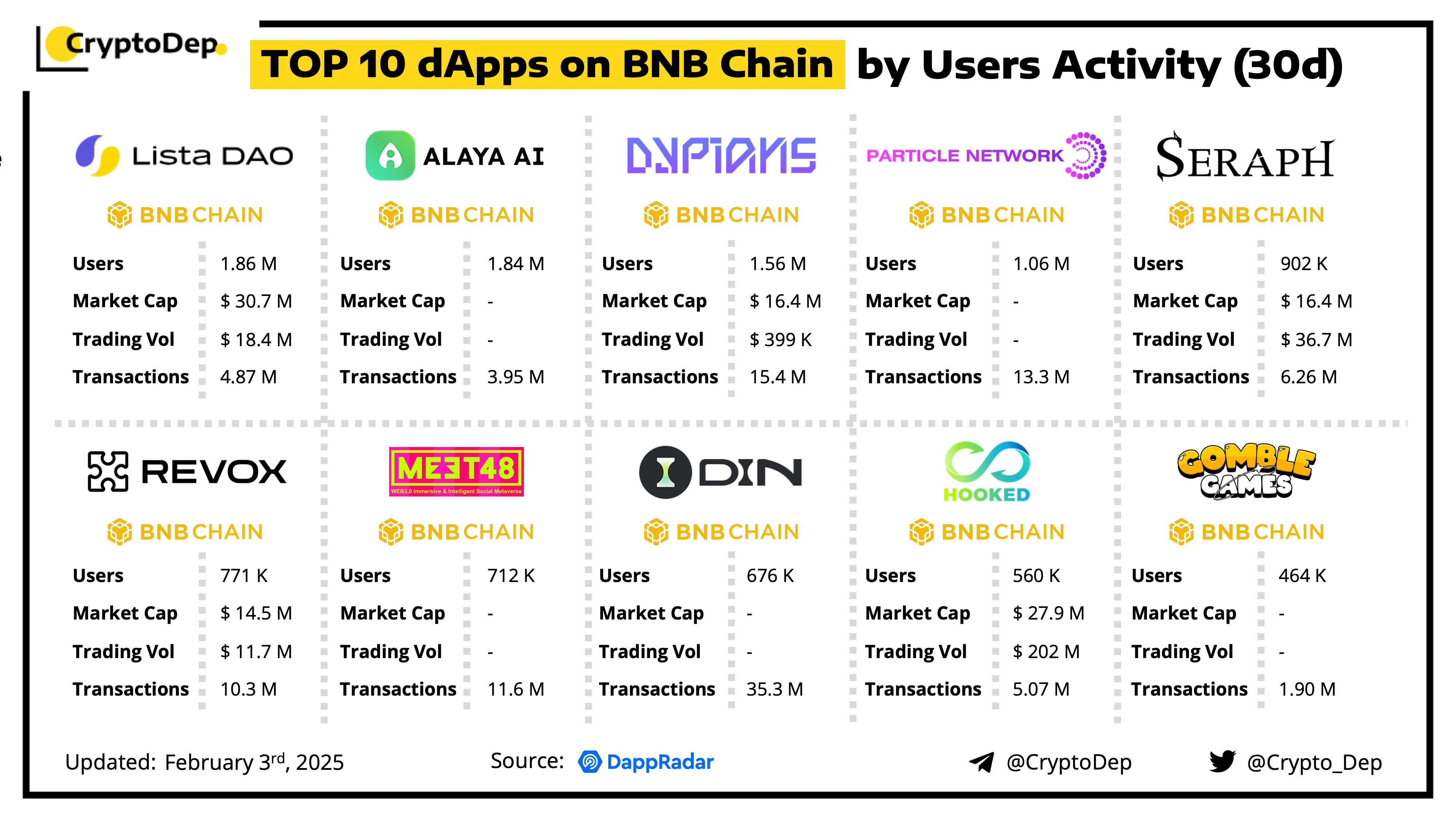 ββTOP 10 dApps on BNB Chain by Users Activity (30d)