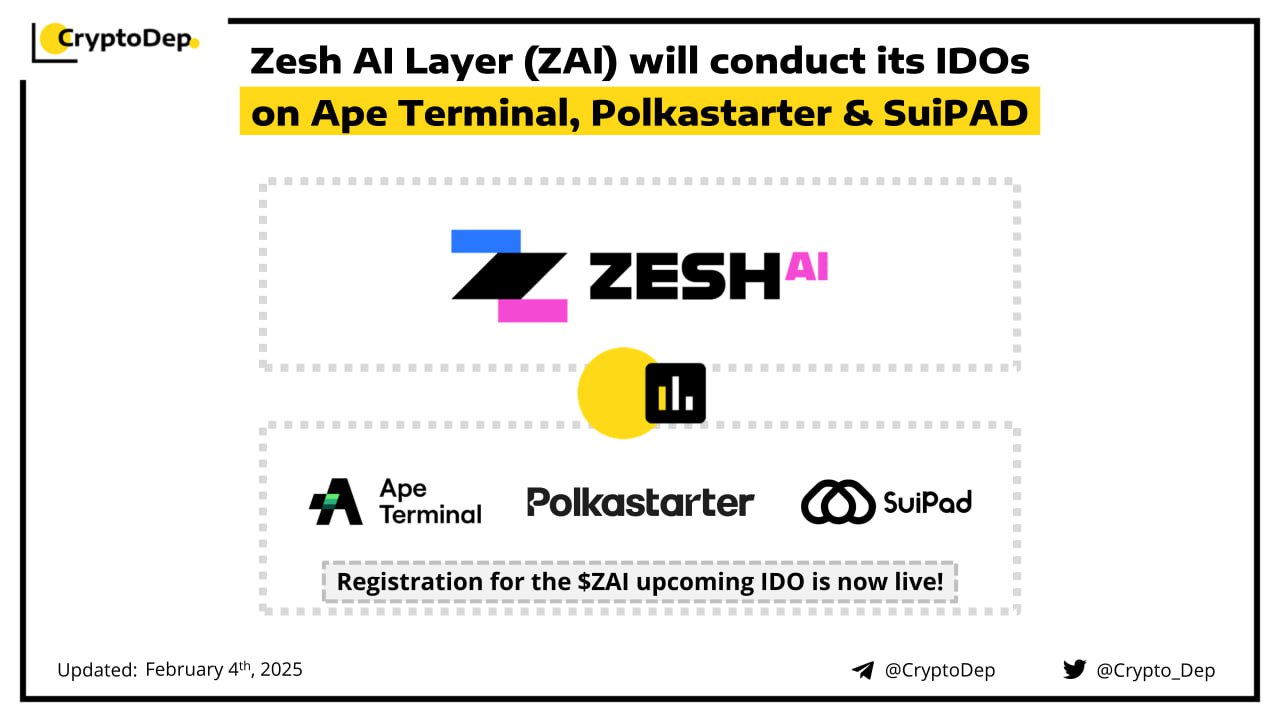 Zesh AI Layer has announced its upcoming token sales on Ape Terminal, Polkastarter, and SuiPAD on February 7th. To prepare for the sale, users can now register for the IDO on Ape Terminal, secure the allowlist spot on Polkastarter, and stake $SUIP on SuiPAD. Zesh AI is an all-in-one Web3 ecosystem leveraging advanced AI Agents and LLMs to redefine KOL analysis, community engagement, and campaign optimization.
