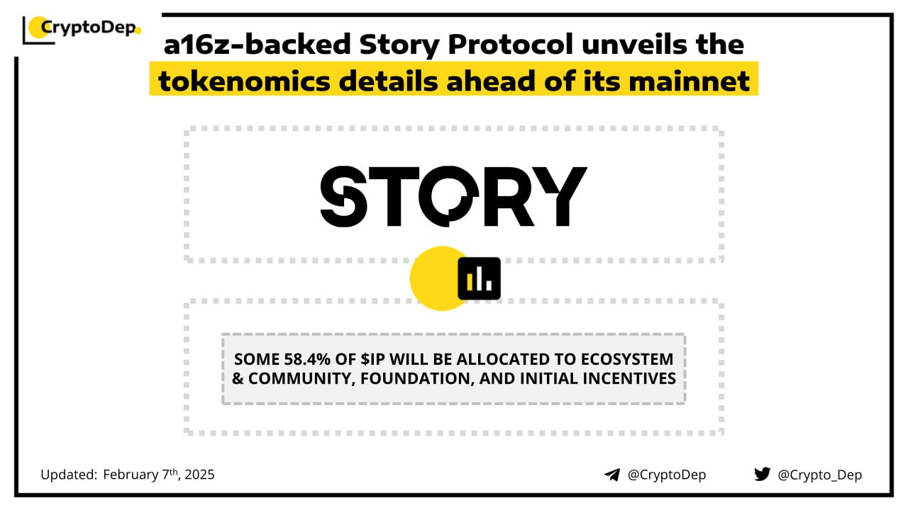 Story Protocol, a Layer 1 network built for IP management, has introduced its native $IP token. Some 58.4% of $IP will be devoted to ecosystem & community, foundation, and initial incentives. Among the token's core utilities are staking, gas fees, and governance. Moreover, the project has unveiled its staking that will follow Fair Launch mechanism.