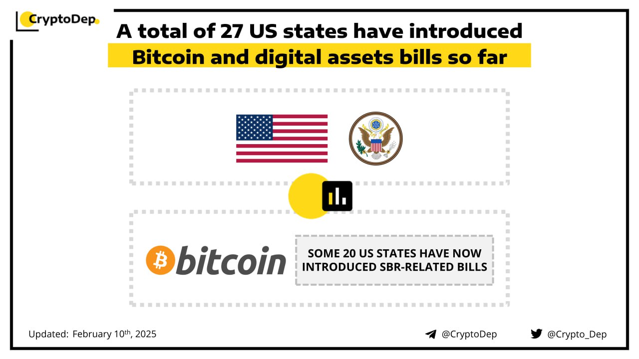 ββA total of 27 US states have introduced Bitcoin and digital assets bills so far