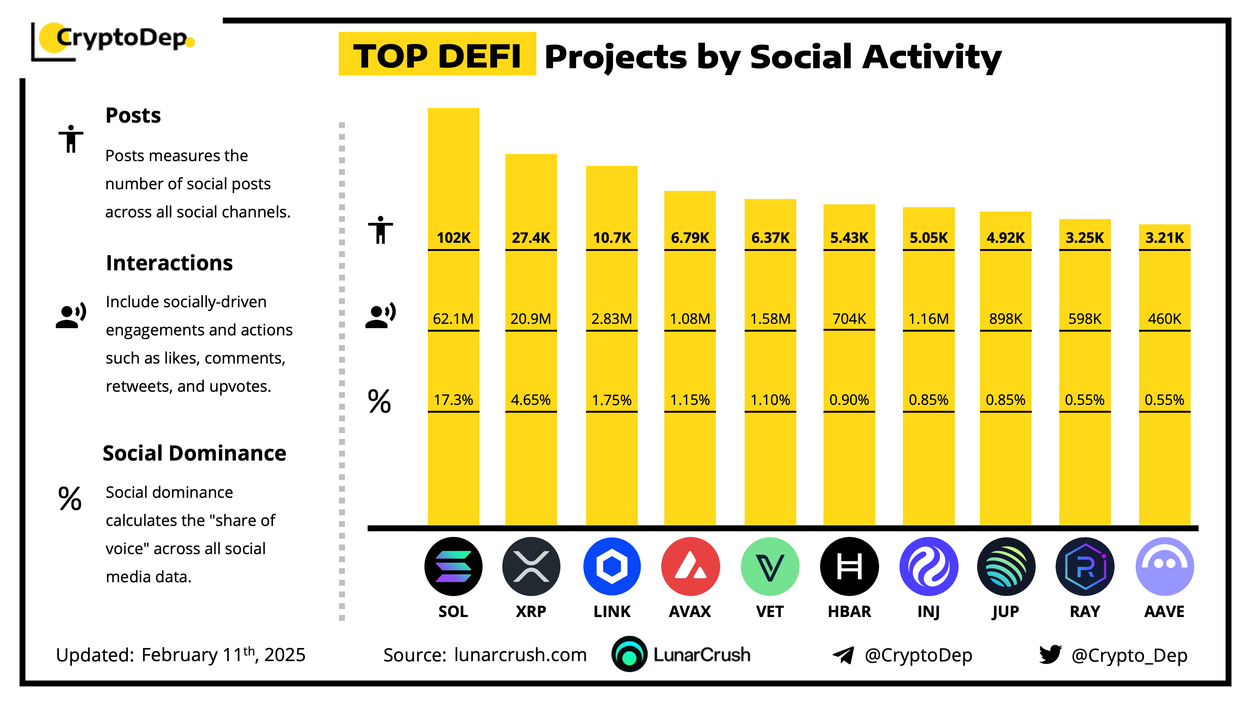 Interactions include socially-driven engagements and actions such as likes, comments, retweets, and upvotes.