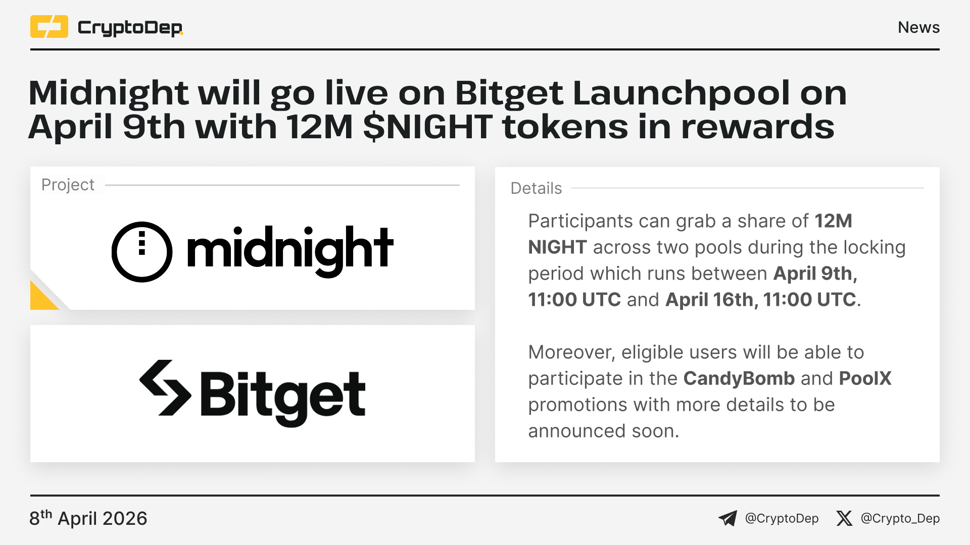 Midnight will go live on Bitget Launchpool on April 9th with 12M $NIGHT tokens in rewards