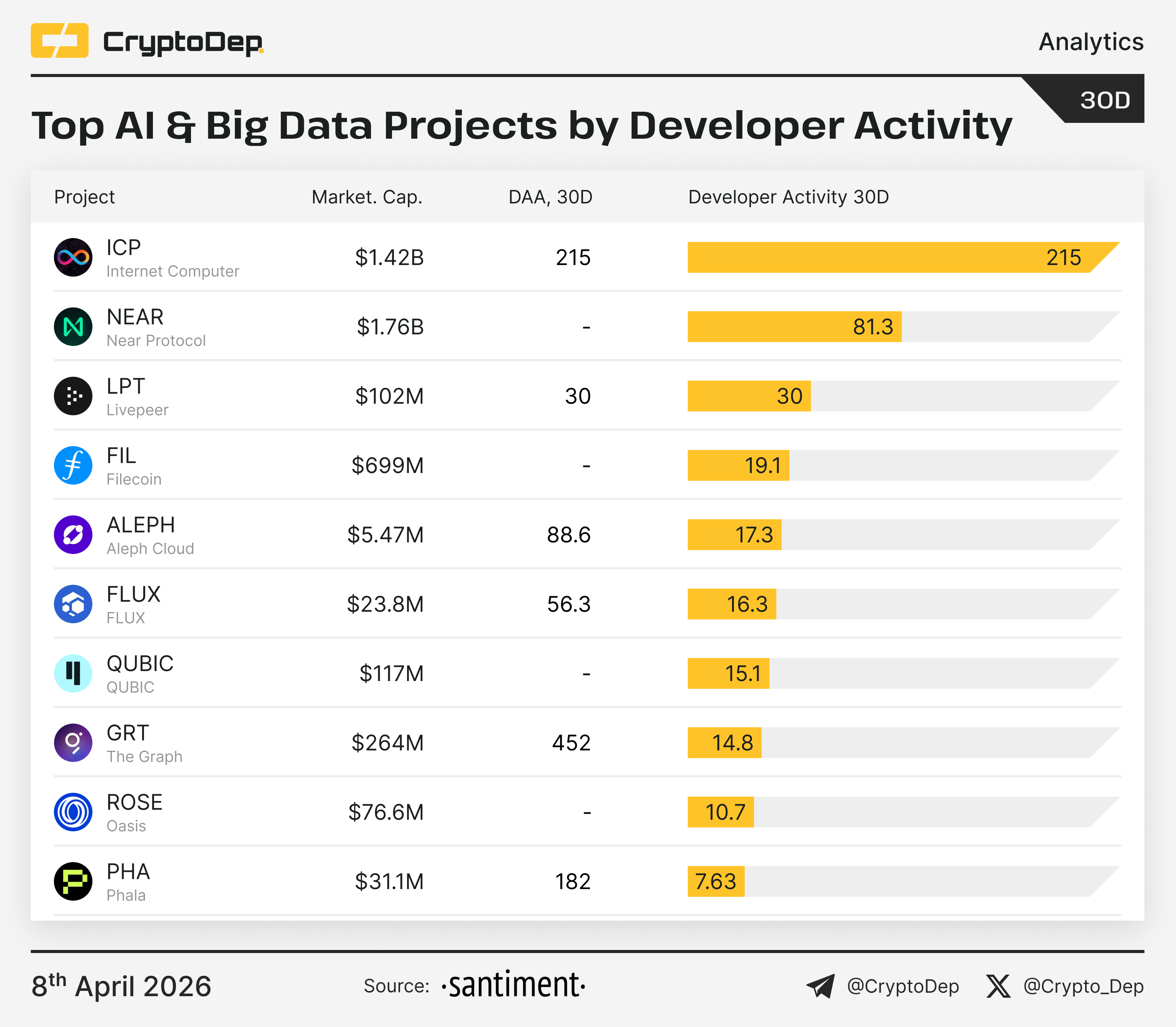 Top AI & Big Data Projects by Developer Activity (30d)