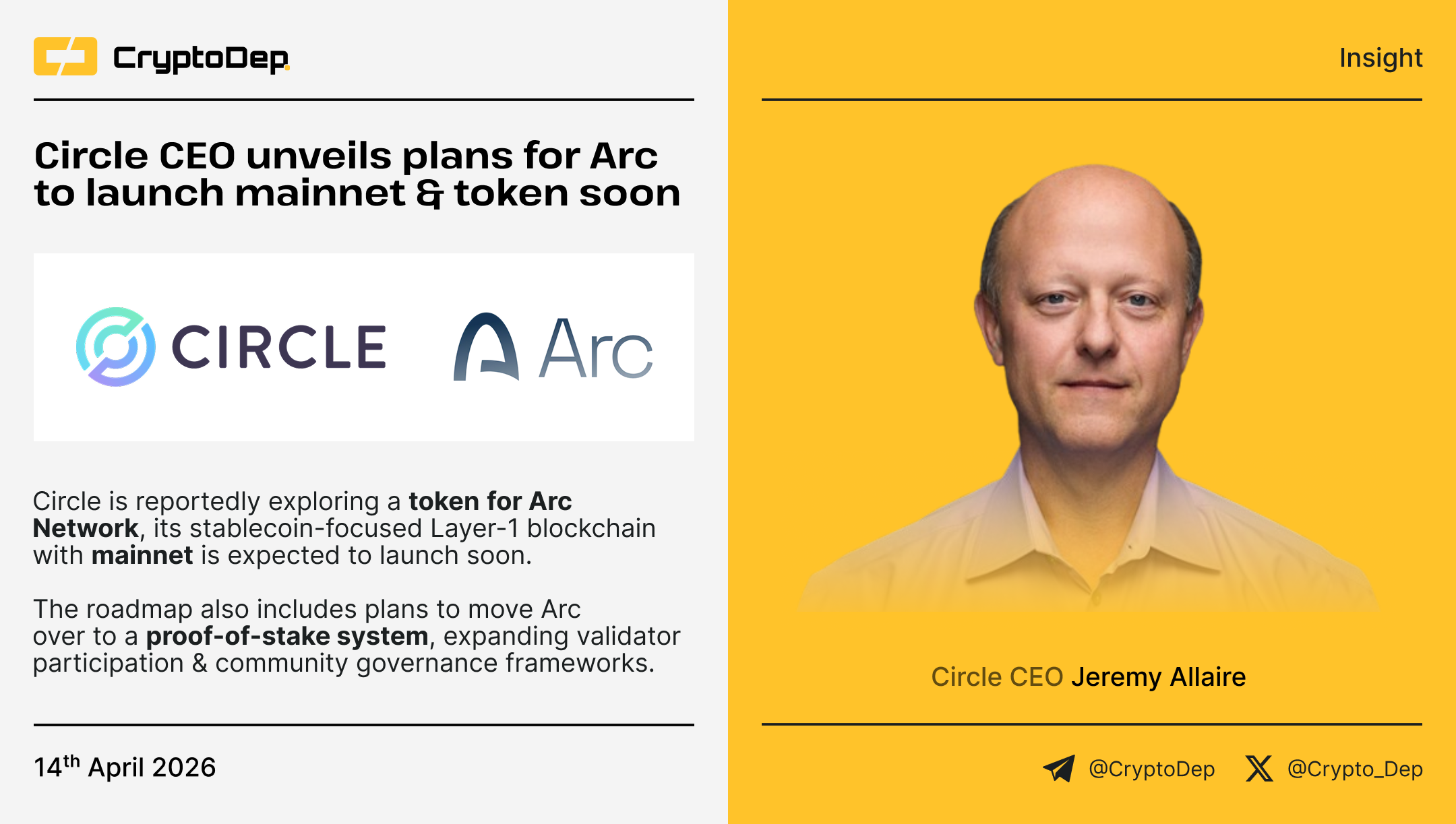 Circle is retedly exploring a token for Arc Network, its stablecoin-focused Layer-1 blockchain with mainnet is expected to launch soon. The roadmap also includes plans to move Arc over to a proof-of-stake system, expanding validator participation & community governance frameworks.