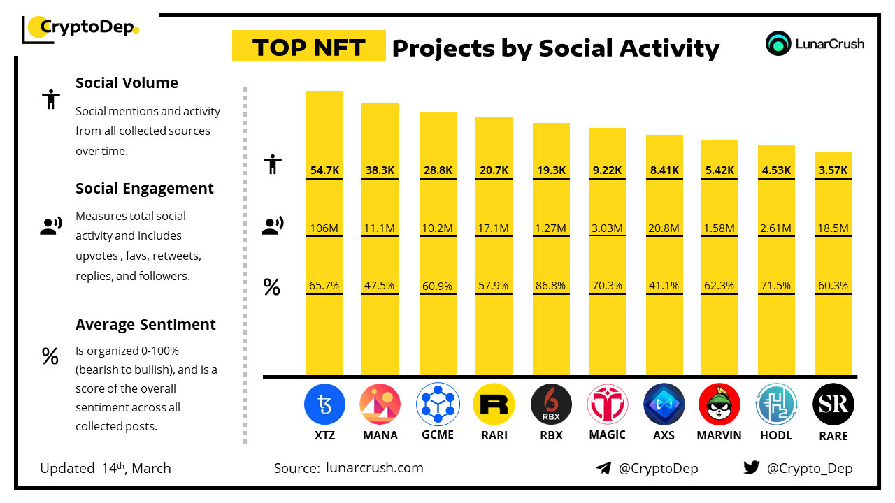 Social Engagement measures total social activity and includes upvotes, favs,retweets, replies, and followers.