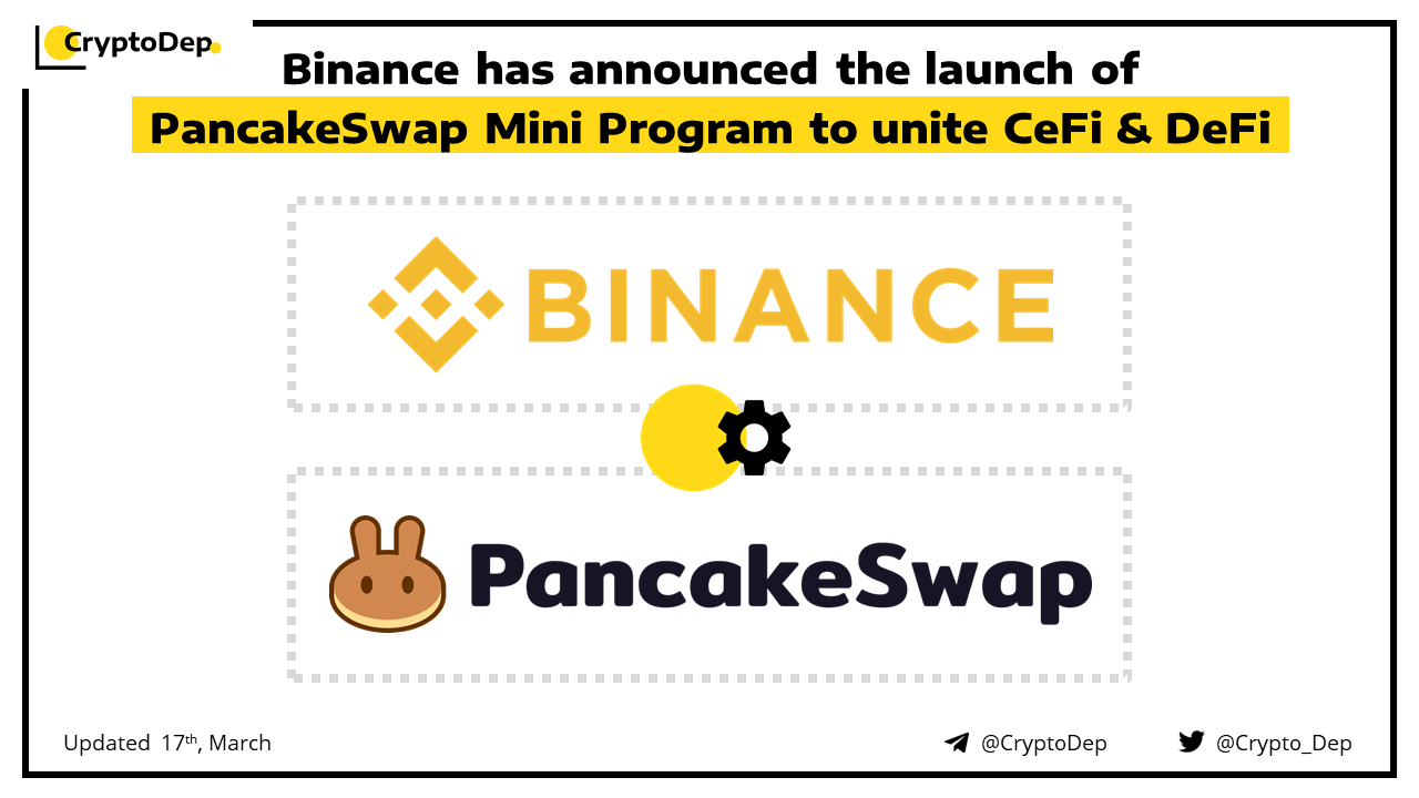 ββBinance has announced the launch of PancakeSwap Mini Program to unite CeFi & DeFi