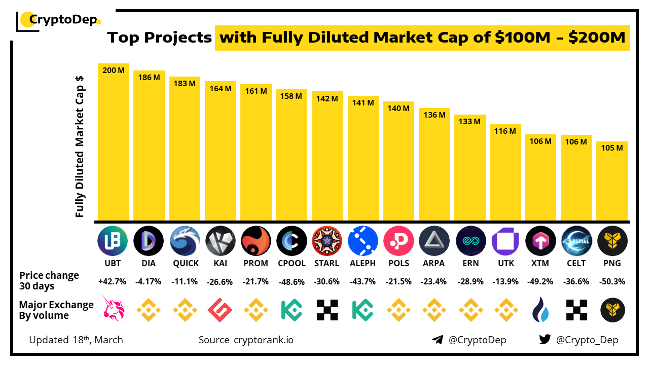 ​​Top Projects with Fully Diluted Market Cap of $100M - $200M