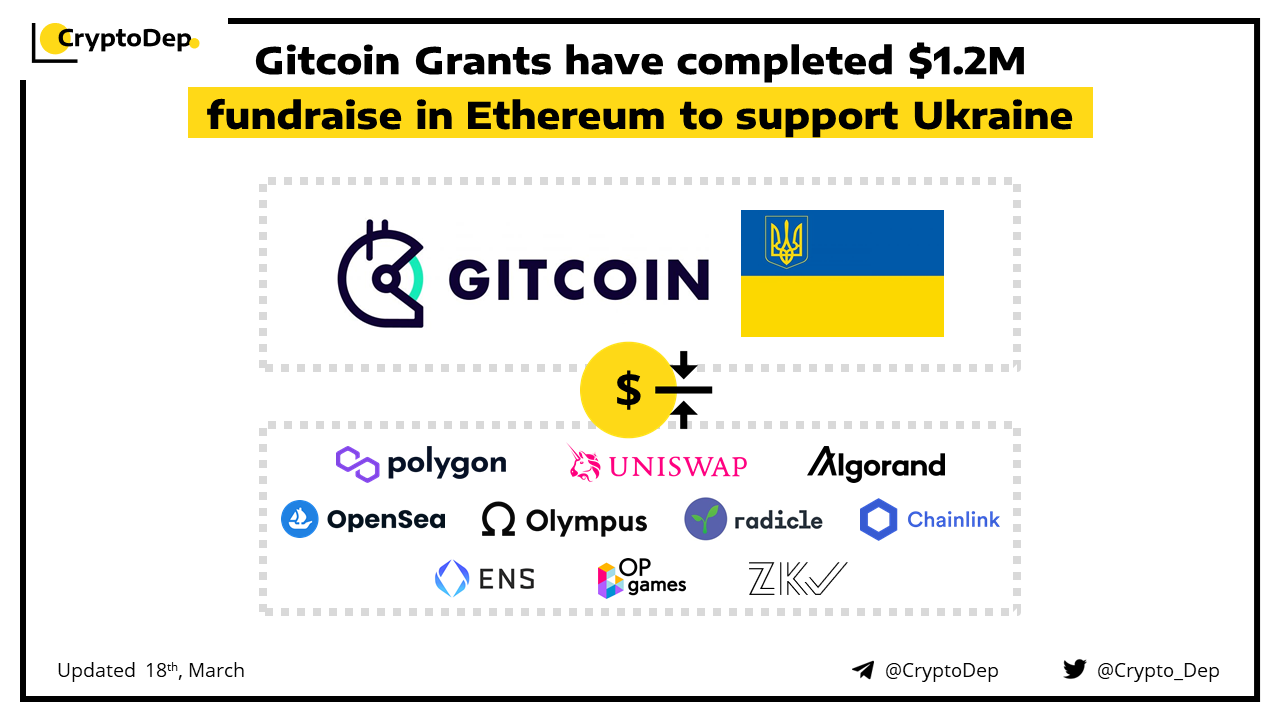 ​​Gitcoin Grants have raised $1.2M in Ethereum to support Ukraine