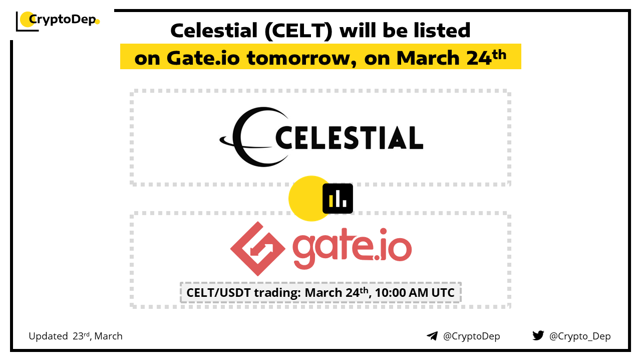 ββCelestial (CELT) will be listed on Gate tomorrow, on March 24th at 10:00 AM UTC