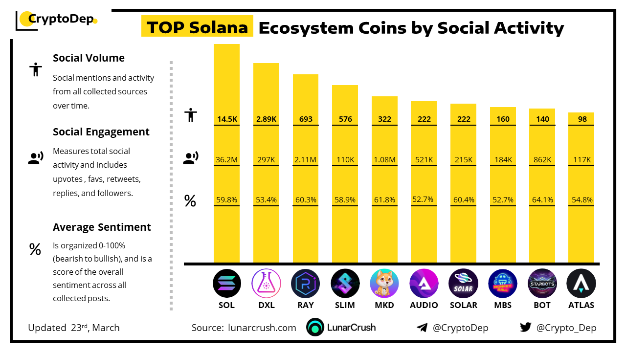 Average Sentiment is organized 0-100% (bearish to bullish), and is a score of the overall sentiment across all collected posts