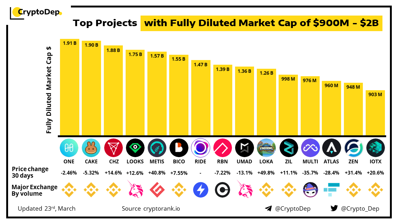 ββTop Projects with Fully Diluted Market Cap of $900M - $2B