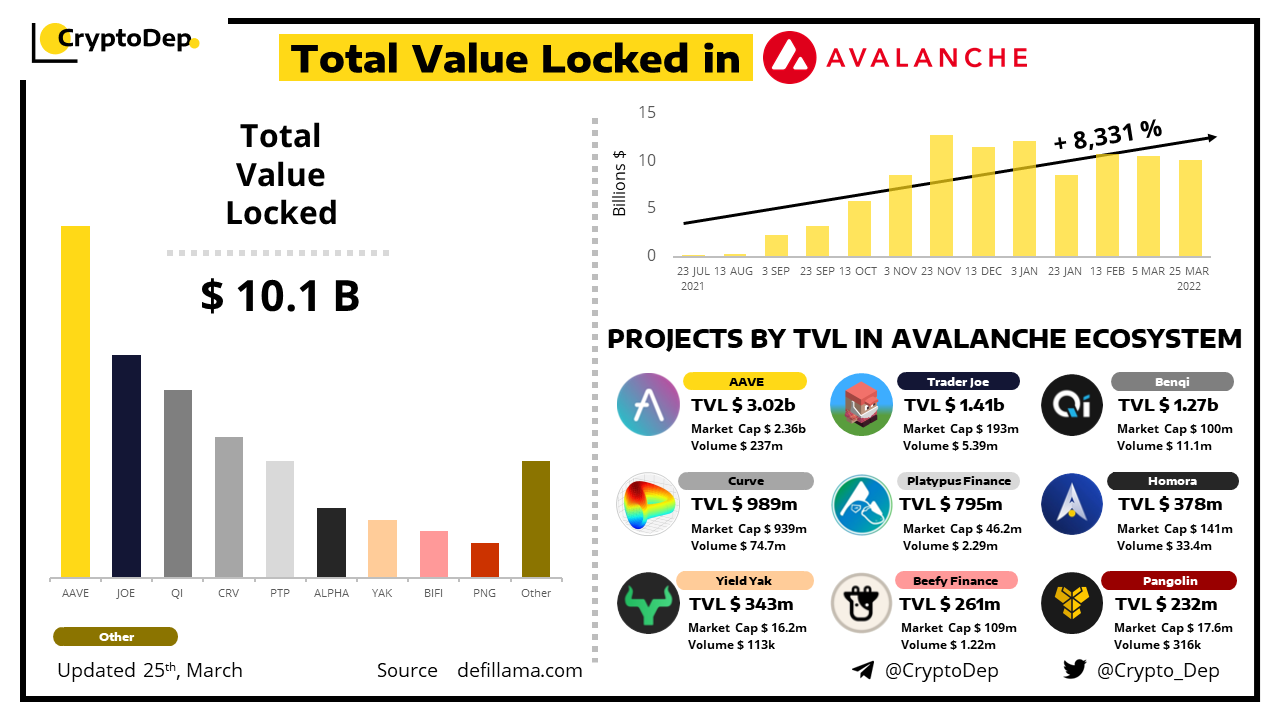 ββTotal Value Locked (TVL) in Avalanche Ecosystem