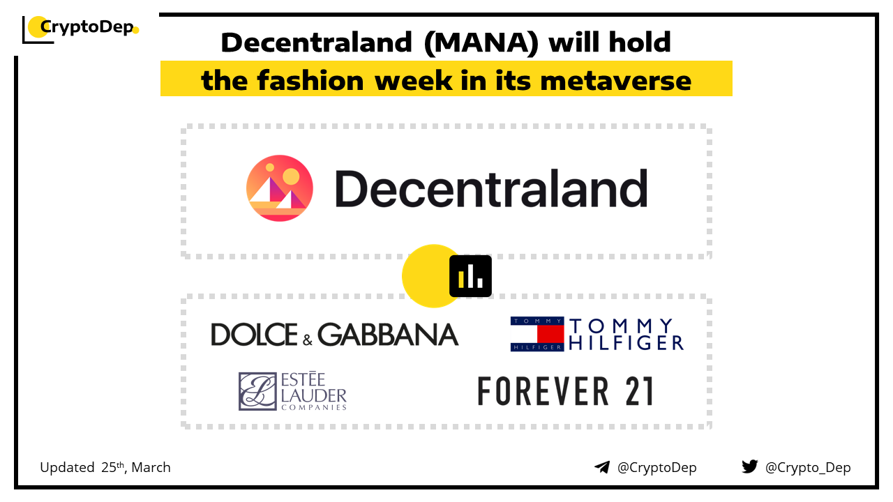 ββDecentraland (MANA) will hold the fashion week in its metaverse