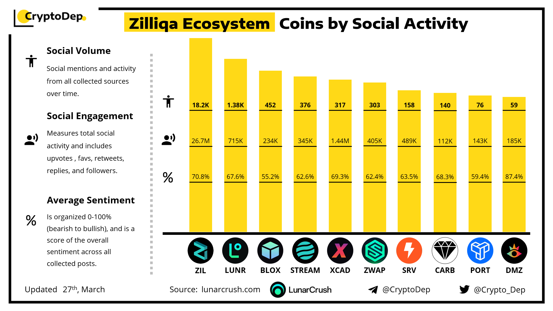 ββZilliqa Ecosystem Coins by Social Activity