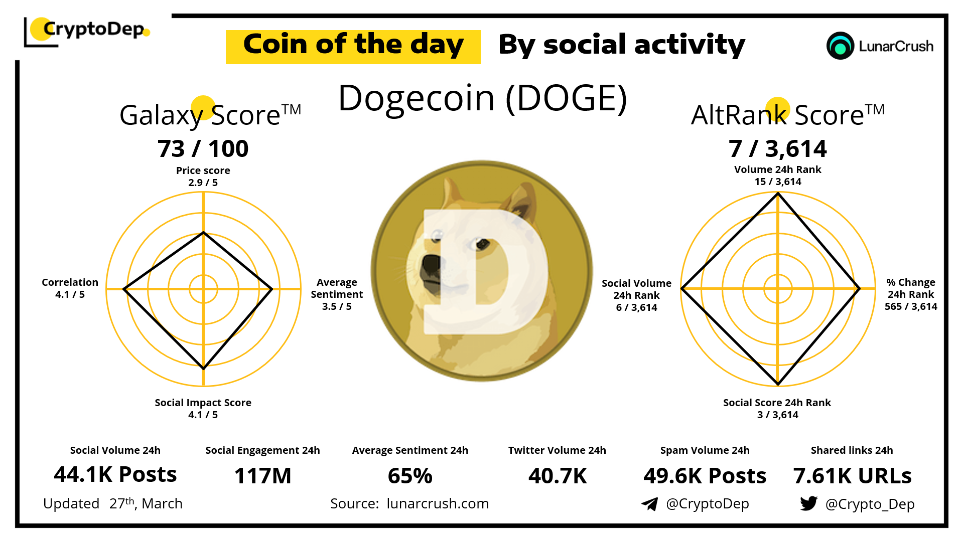 ββCoin of the day by social activity - Dogecoin (DOGE).