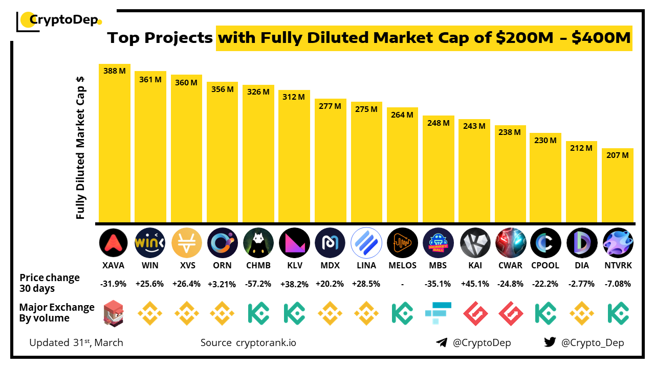 ββTop Projects with Fully Diluted Market Cap of $200M - $400M