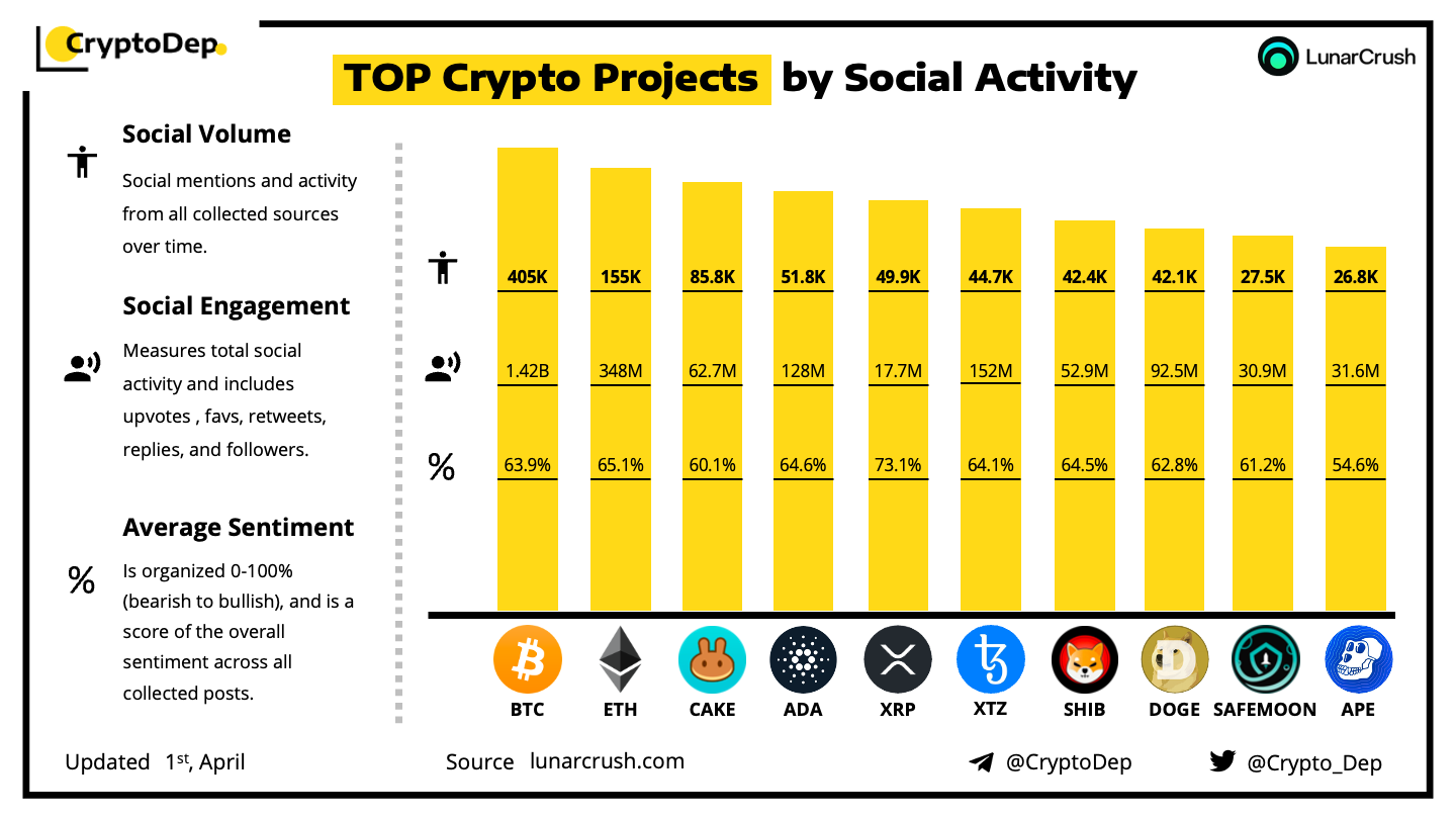 Social Engagement measures total social activity and includes upvotes, favs, retweets, replies, and followers.