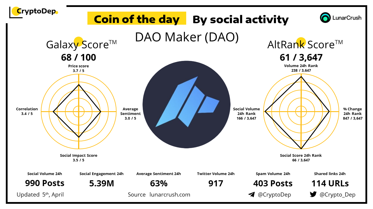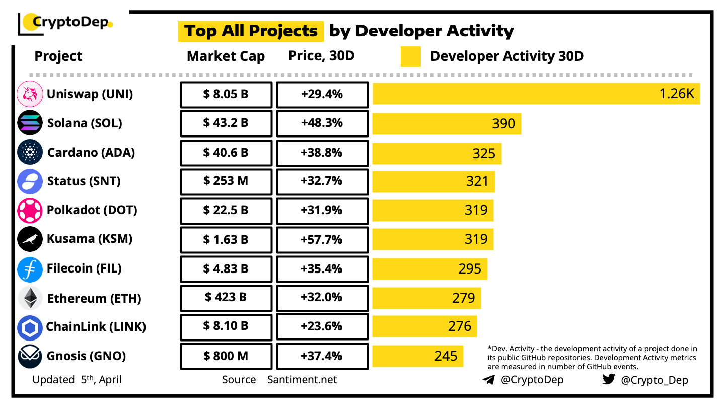 Dev.Activity - the development activity of a project done in its public Github repositories. Development Activity metrics are measured in number of Github events.