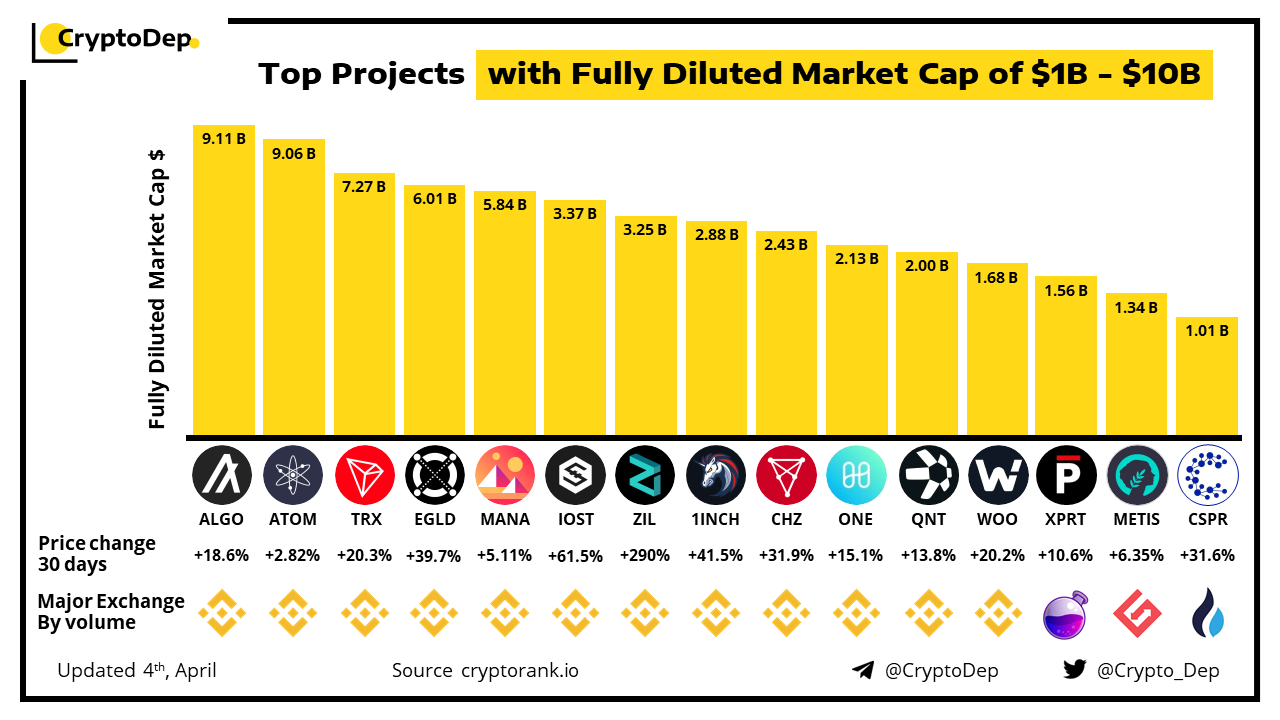 Top Projects with Fully Diluted Market Cap of $1B - $10B