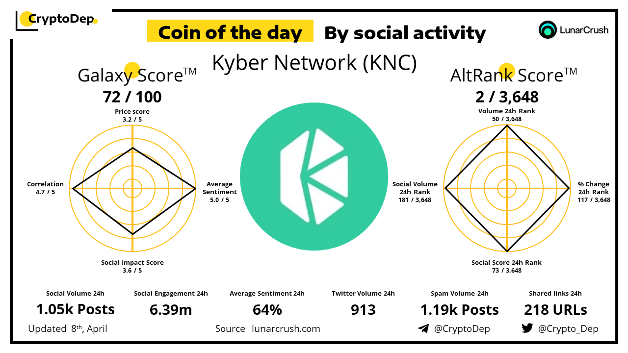 ββCoin of the day by social activity - Kyber Network (KNC).