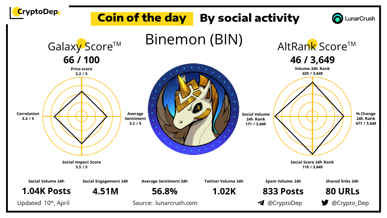 ββCoin of the day by social activity - Binemon (BIN).