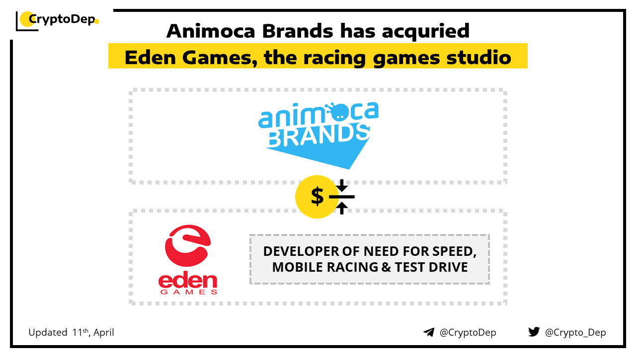 Animoca Brands has completed the acquisition of 100% of the issued capital of Eden Games S.A.S. from Engine Gaming & Media. Eden Games has strong experience in developing award-winning racing games across the mobile, console, and PC platforms, including Need for Speed: Porsche Unleashed, F1ยฎ Mobile Racing, and the franchises Gear.Club, Test Drive, and V-Rally.