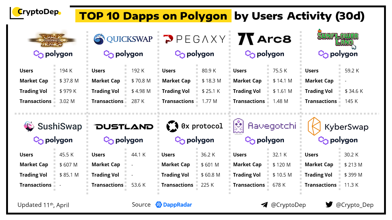 โโTop 10 Dapps on Polygon by Users Activity (30d)