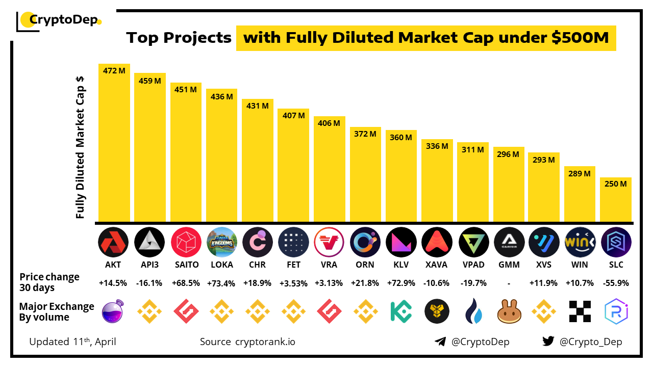 โโTop Projects with Fully Diluted Market Cap under $500M