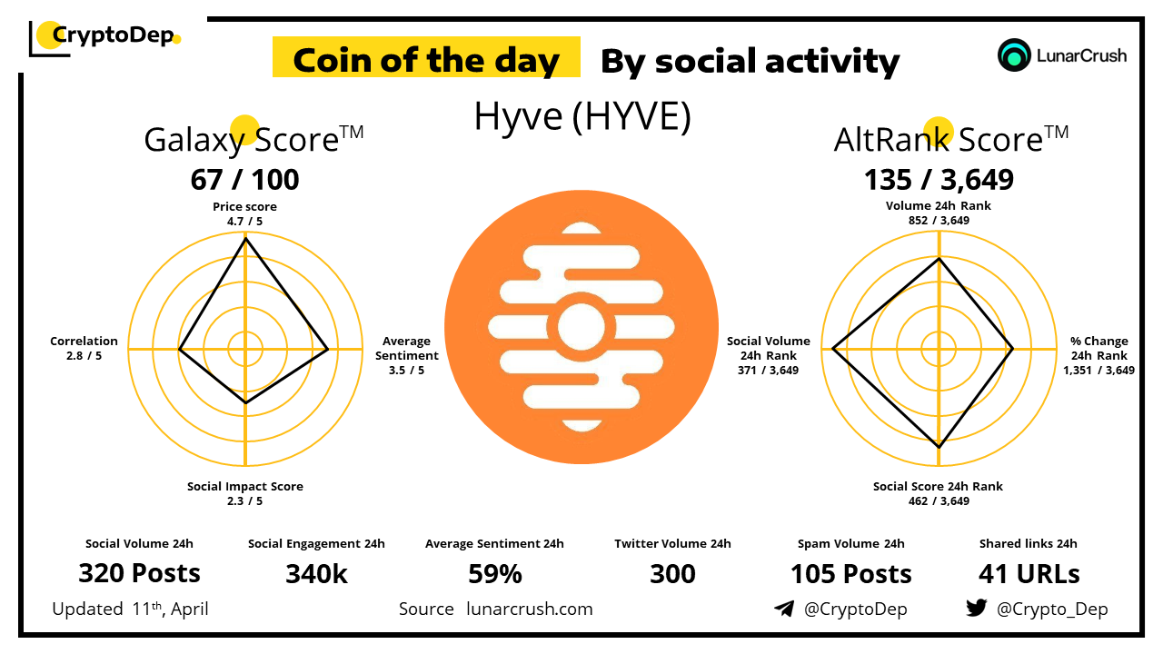 โโCoin of the day by social activity - Hyve (HYVE).