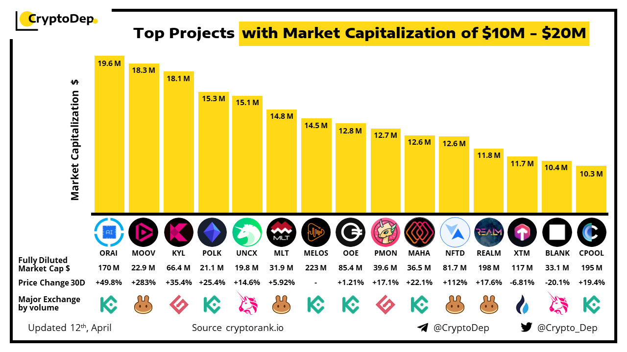 โโTop Projects with Market Capitalization of $10M - $20M