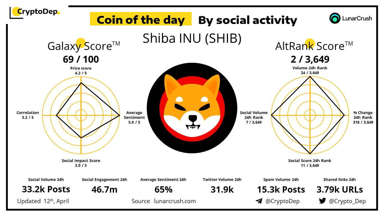 โโCoin of the day by social activity - Shiba INU (SHIB).