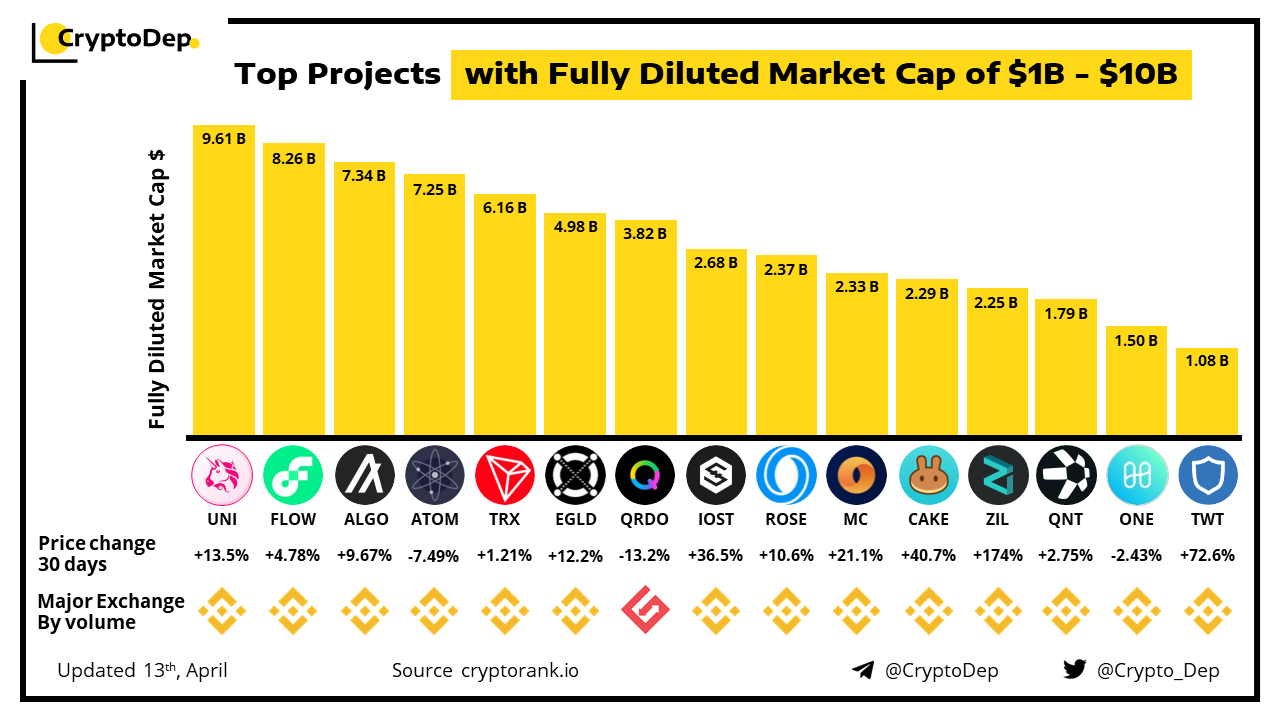 ββTop Projects with Fully Diluted Market Cap of $1B - $10B