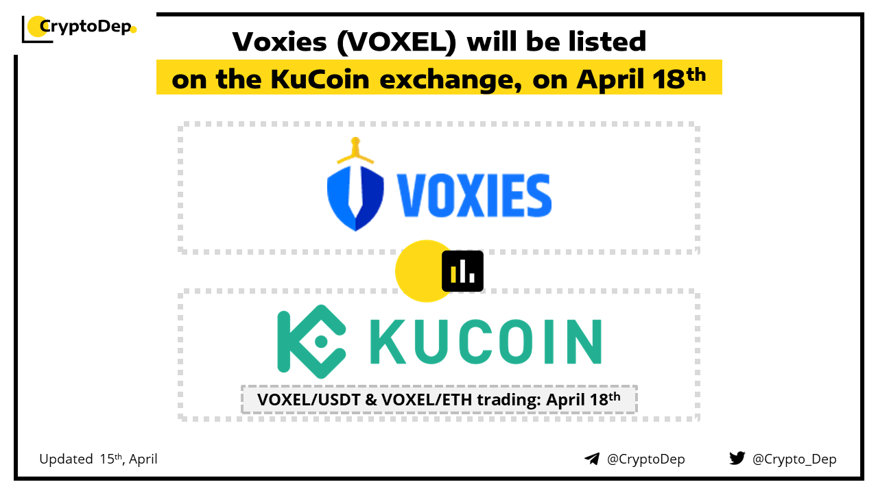 ββVoxies (VOXEL) will be listed on the KuCoin exchange, on April 18th