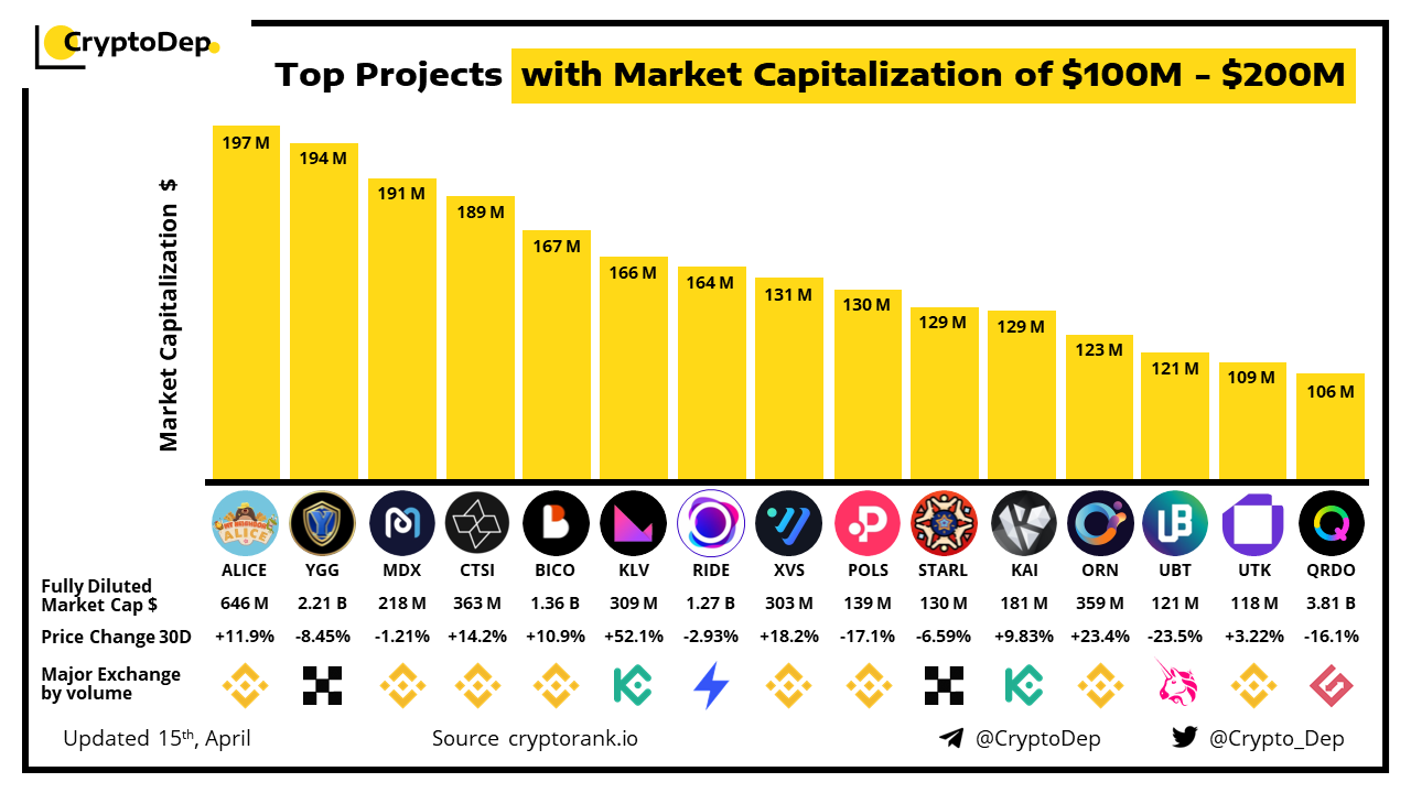 ββTop Projects with Market Capitalization of $100M - $200M