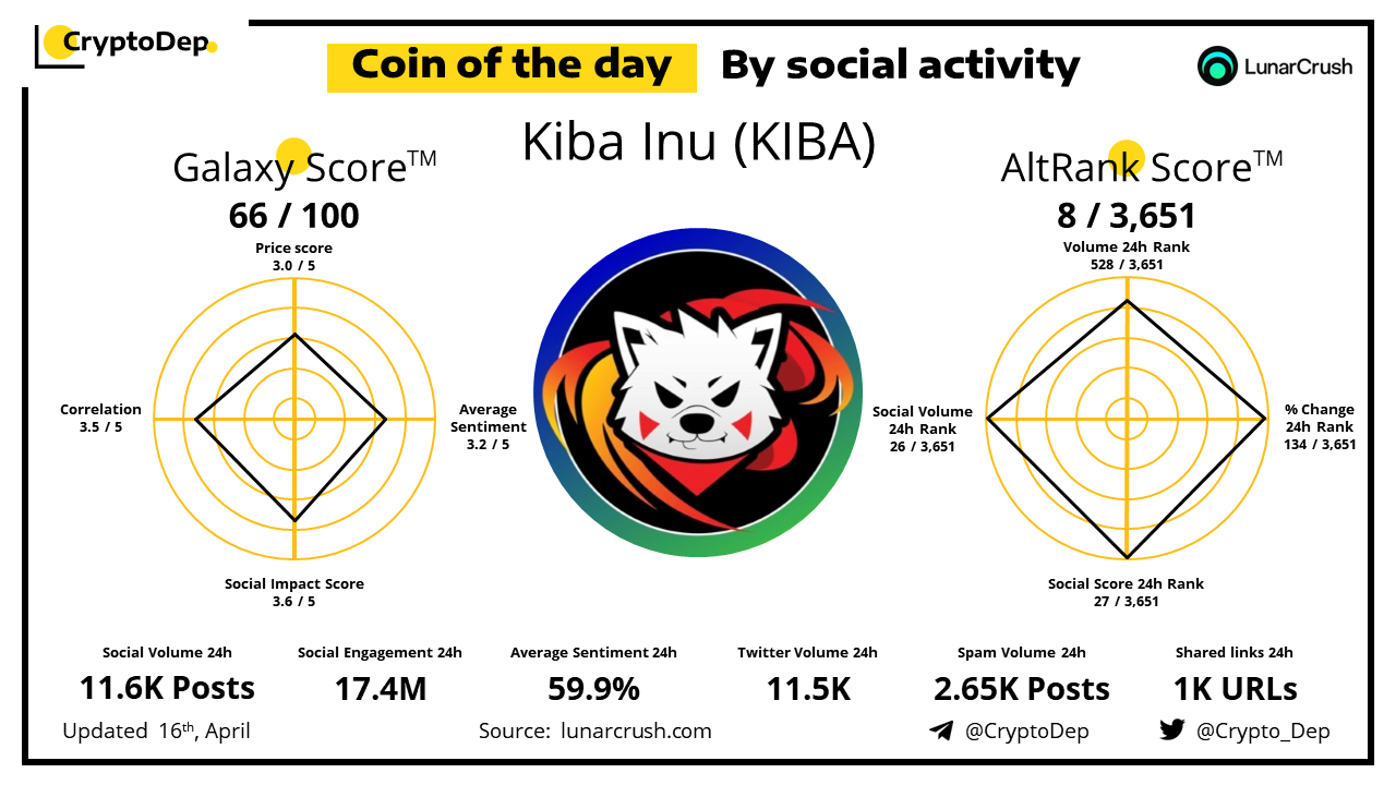 ββCoin of the day by social activity - Kiba Inu (KIBA).