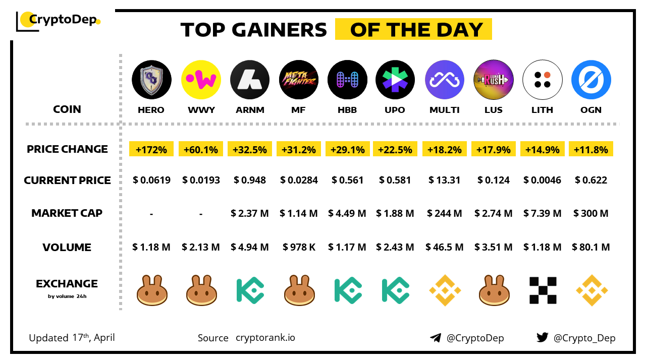 ββCoin of the day by social activity - StepHero (HERO).