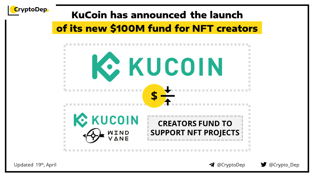 KuCoin will launch a $100M fund to support early-stage NFT projects, moreover, the fund will complement the newly launched KuCoin Windvane NFT Marketplace. Windvane offers creators access to the heavy exchange traffic and the support of the community for building initial NFT offerings.