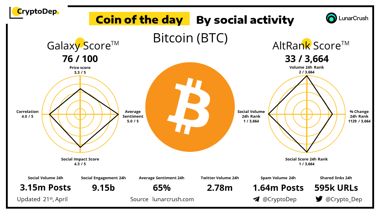ββCoin of the day by social activity - Bitcoin (BTC).
