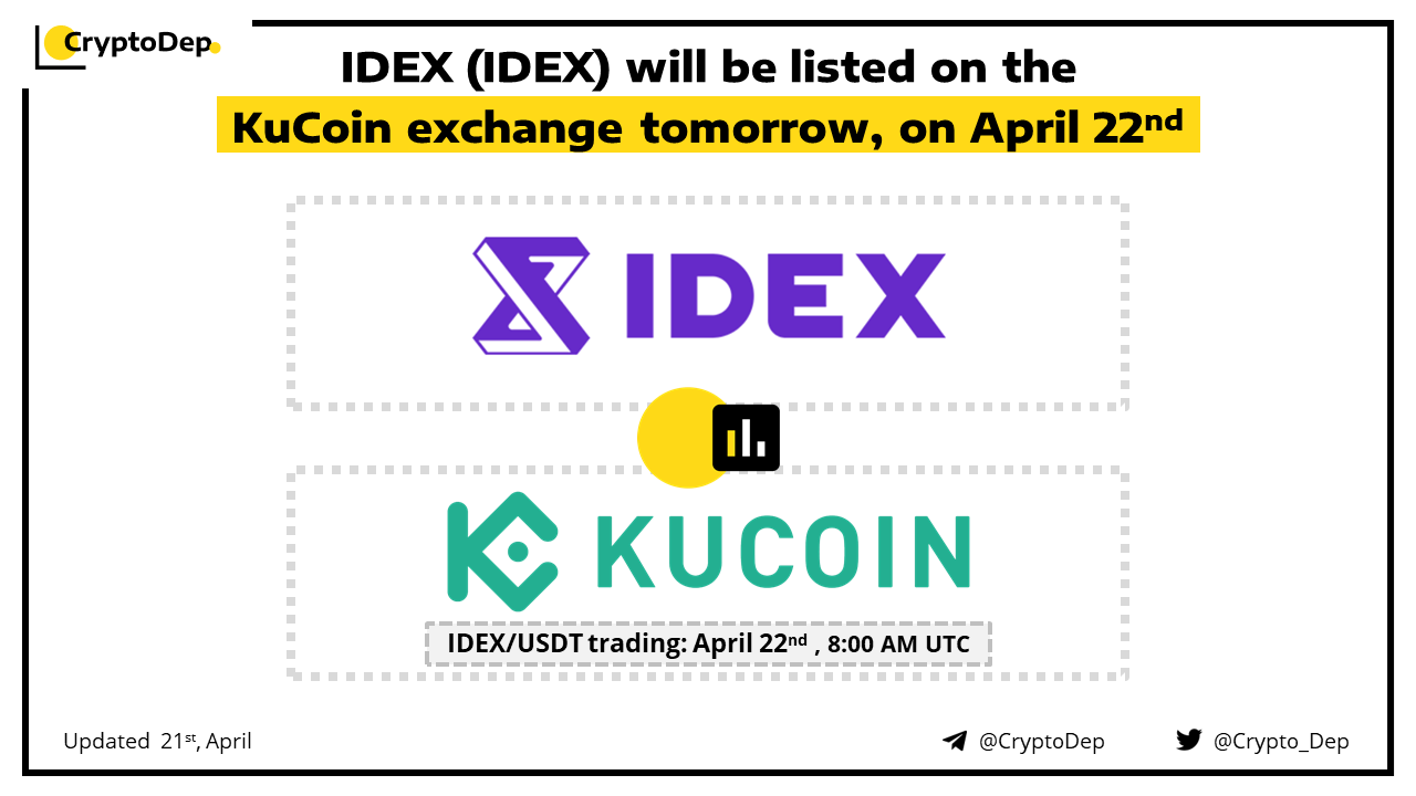 ββIDEX (IDEX) will be listed on the KuCoin exchange tomorrow, on April 22nd