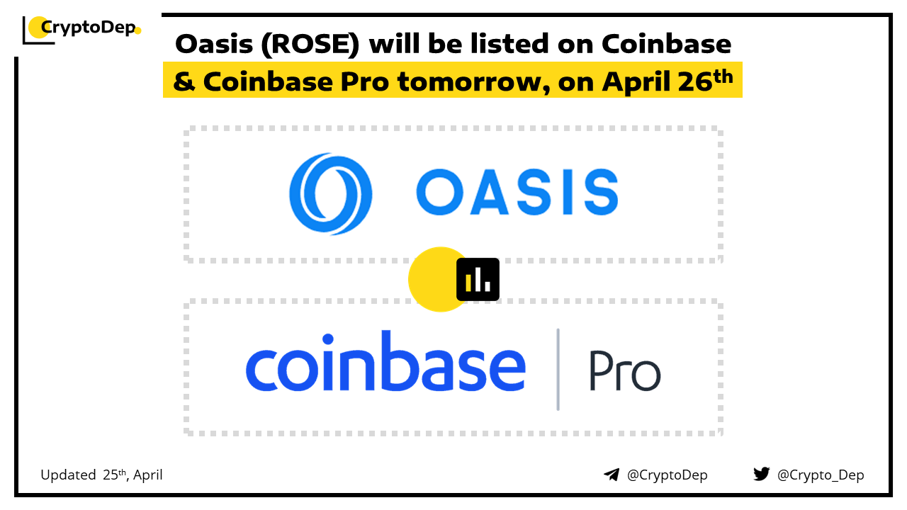 ββOasis (ROSE) will be listed on Coinbase & Coinbase Pro tomorrow, on April 26th