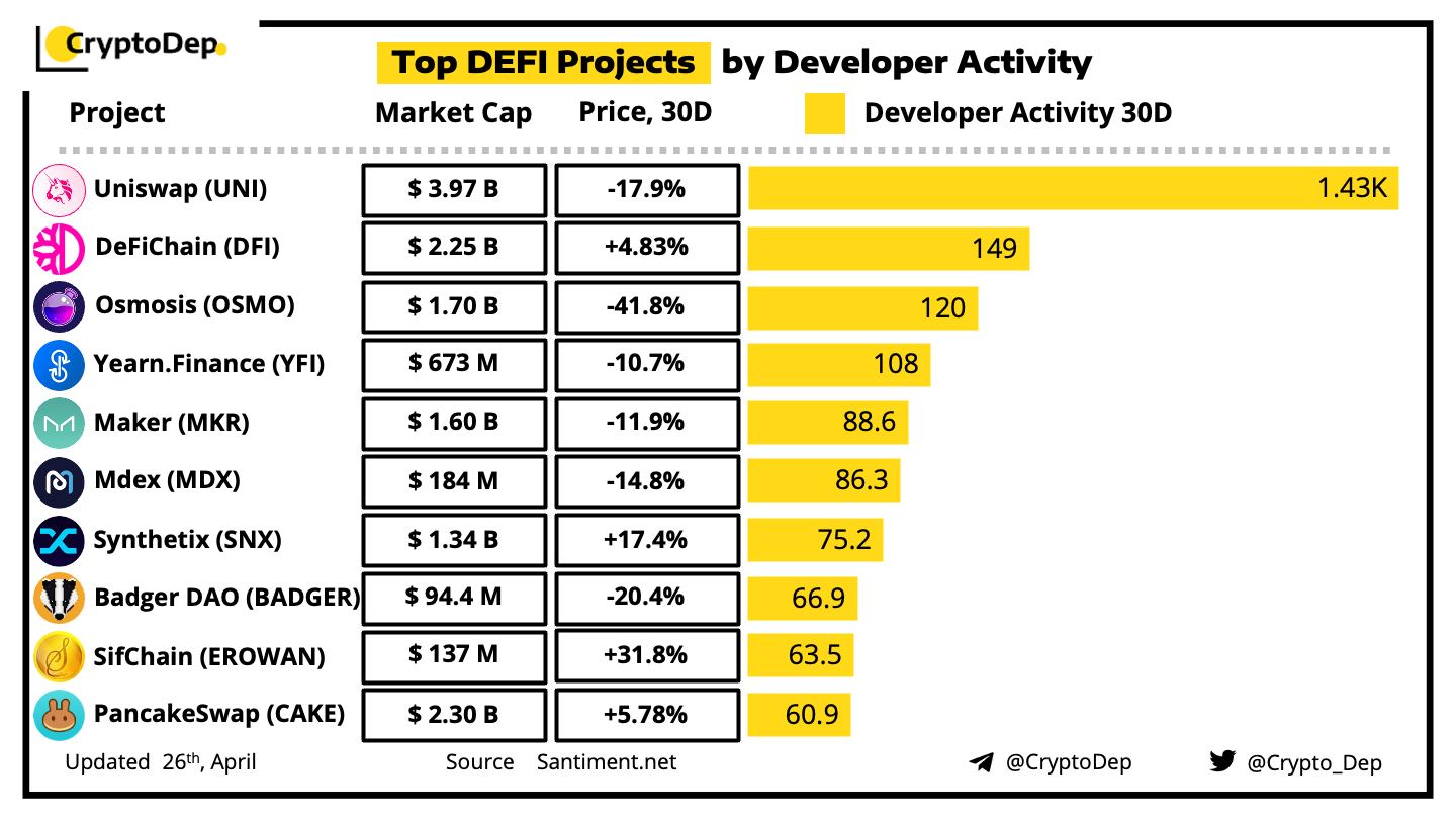 Dev.Activity - the development activity of a project done in its public Github repositories. Development Activity metrics are measured in a number of Github events.