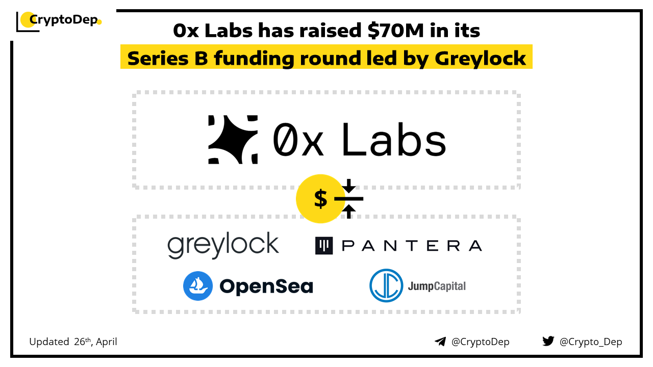 0x Labs, a decentralized exchange infrastructure provider, has conducted a $70M Series B with participants from Greylock, Pantera, OpenSea, and Jump Capital. 0x Labs says it provides developers and businesses the ability to incorporate DEX functionality into applications.