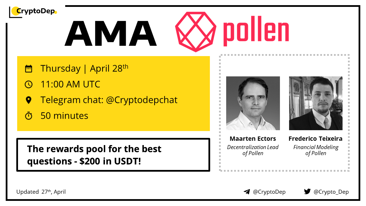 ββπ Dear community, CryptoDep will host an AMA with Pollen $PLN team on Thursday, 28th of April, at 11:00 AM UTC in the CryptoDep Chat