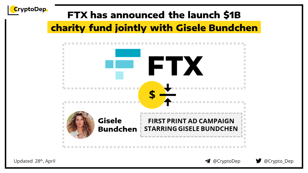 ββFTX has announced the launch $1B charity fund jointly with Gisele Bundchen